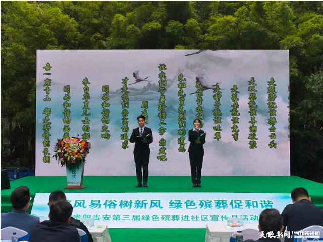 啟動儀式 此次活動,旨在通過政策宣講、媒體宣傳,提高群眾對殯葬法規、惠民殯葬政策、移風易俗殯葬改革內容的知曉率,持續倡導文明節儉治喪、節地生態安葬、文明綠色祭掃殯葬新風,進一步推動貴陽貴安“治風”“四在農家·和美鄉村”“爽爽貴陽·旅居生活”示范帶建設工作。深化殯葬改革,倡導移風易俗及綠色殯葬文明新風,維護貴陽貴安文明形象,促進文明城市、文明村鎮創建和美麗鄉村建設,讓文明之花蔚然成風。