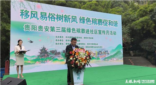 發表時間:2024-03-26 17:21來源:天眼新聞 3月26日,由貴陽市委宣傳部、貴陽市民政局主辦的“移風易俗樹新風·綠色殯葬促和諧”貴陽貴安第三屆綠色殯葬進社區宣傳月啟動儀式在貴陽市黔靈山公園園內廣場舉行。貴州省民政廳社會事務處處長黃猛,貴陽市委宣傳部副部長、市精神文明辦主任陳剛,貴陽市民政局黨委委員、副局長張楠出席了啟動儀式。